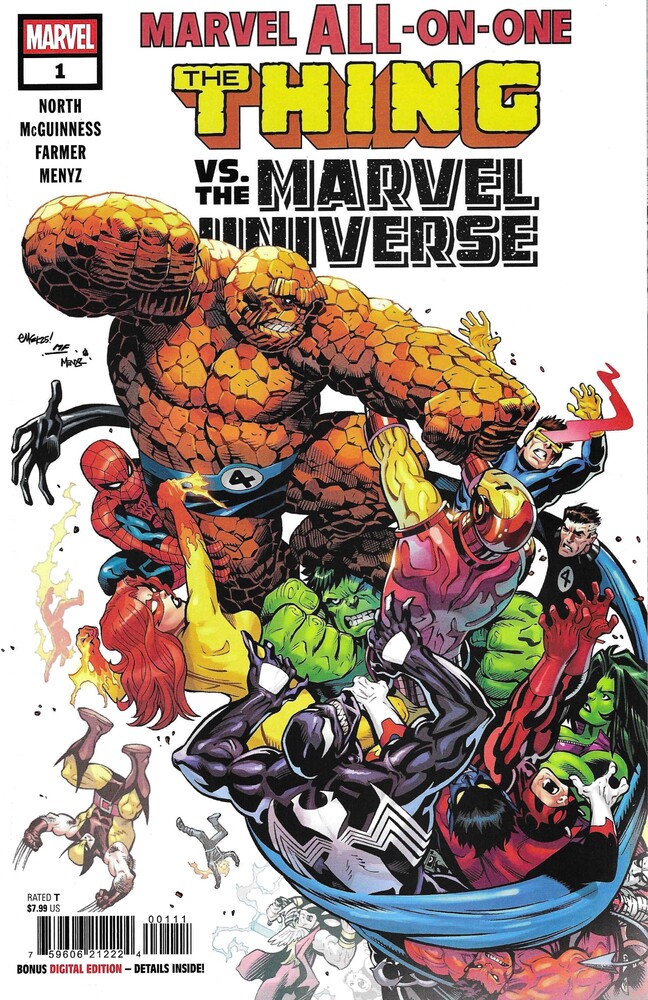 The Thing vs. the Marvel Universe by Ryan North (writer), Ed McGuinness (penciler), Mark Farmer (inker), Marcio Menyz (colorist), Joe Caramagna (letterer), and Tom Brevoort (editor). $7.99, 50 pgs, Marvel.