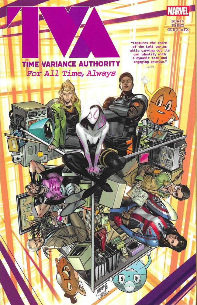 Time Variance Authority: For All Time, Always by Katharyn Blair (writer), Pere Pérez (artist), Guru-eFX (colorist), Joe Sabino (letterer), and Jennifer Grünwald (collection editor). $17.99, 110 pgs, Marvel.