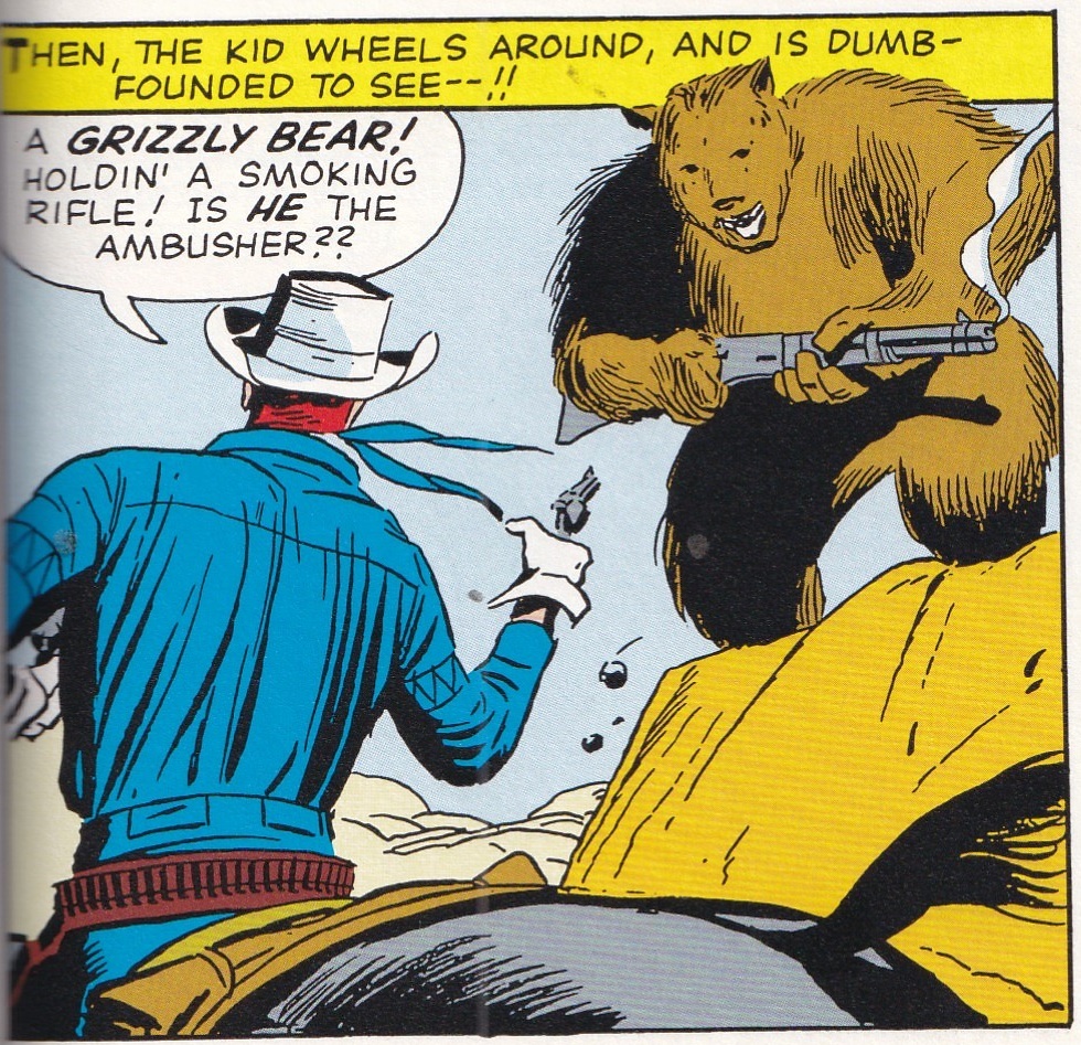 This is the first one of these omnibuses I’ve managed to finish (there have been three others), and it’s pretty fun – more superhero stuff than the first one, obviously (which gathered all the comics Marvel put out in the month Fantastic Four #1 came out), including Daredevil #1, which is the reason this one exists – but still plenty of romance/model comics and Westerns. Everett does gorgeous work on DD #1, although, as usual, so many comics from this time period would have been better off uncolored – in the back, we get a few pages of Everett’s original pages, and the inks are just amazing, and while the coloring doesn’t completely obscure it, it still tempers it far too much (this is true of the other uncolored examples in the back of the book – some Larry Lieber, Don Heck, Ditko, and Dick Ayers pages, although none of those are as gorgeous uncolored as Everett’s are) – and we also get a bunch of Kirby, as he draws the lead story in Journey Into Mystery #103 (13 pages), the “Tales of Asgard” story in JIM #103 (5 pages), the lead story in Strange Tales #120 (14 pages), Fantastic Four #26 (23 pages), The Avengers #5 (23 pages), Sgt. Fury and His Howling Commandos #7 (22 pages), and X-Men #5 (24 pages) – 113 pages in a month, because the King cares not for modern-day wussie artists who can’t even finish one book a month! Stan Goldberg was cranking them out, too, as he draws most of the “Millie the Model” universe, but his art doesn’t seem like it would take as long, as it’s a bit more simplistic than Kirby’s. Anyway, this is a fun book. Millie is always awesome, Patsy and Hedy get up to their usual shenanigans, the Two-Gun Kid, Kid Colt, and the Rawhide Kid (teaming up with the Two-Gun Kid in a weird crossover, as Marvel implies that the Two-Gun Kid is published by a different company) dole out justice, Fury gets court-martialed (but it all works out in the end), and the superheroes do superhero stuff. Hank Pym and Janet van Dyne (written as sexist-ly as possible, because the Sixties) fight the Human Top; Odin tries to break up Thor and Jane Foster by getting Loki to send the Enchantress to tempt him (it doesn’t work, natch); the Black Widow, still on the side of the filthy Commies and still wearing evening wear instead of a much less sexist latex catsuit, fights Iron Man; we get the Watcher’s origin (hey, that’s handy); Doctor Octopus unmasks Spider-Man in front of Betty Brant and J. Jonah Jameson, but nobody (including Doc Ock) believes Puny Parker™ is actually Spider-Man, choosing instead to believe he just dressed up as Spidey to try to get a scoop (so why didn’t the “real” Spider-Man show up, asks no one); the Torch and Iceman team up to stop pirates on a boat going around Manhattan; Doctor Strange visits a haunted house; the Thing fights the Hulk and the Avengers get in the way; the Lava Men attempt to destroy the “surface dwellers” and the Avengers need to stop them; and the X-Men fight Magneto without Xavier’s help and manage to hold their own (and boy howdy, is Xavier a dick in this issue – his dickishness is baked into the foundation of the X-Men, it seems!). It’s all very fun and goofy, with some very weird things butting up against Marvel’s attempts at “realism.” I don’t know where else Marvel can go with this – all the big guns have been introduced, so they can’t do a “first Thor” Omnibus or anything like that. I would love to see them jump ahead and do a “first Ghost Rider” Omnibus or something from the 1970s, even if by then, it’s all superheroes. We shall see. I know this is a chunk of money and a lot of these things have been reprinted elsewhere, but these “what we were publishing in that month” omnibuses are pretty keen.