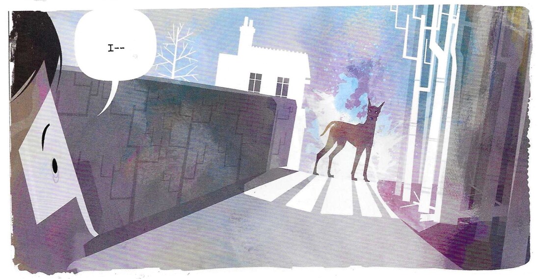 I got a Norm Konyu book a couple of months ago, and now we have another one, except this was supposed to be out well over a year ago, so it’s probable Konyu did it before The Space Between the Trees, but who knows. Anyway, this is another terrific Konyu comic — the dude really knows how to create excellent comics! — that takes place in a small town in England (it’s based on a village in the South Downs, near the Long Man of Wilmington) that has a history that, like a lot of old places, never quite goes away. It takes place in 1996, which it kind of has to, because James, the main character, has to discover some things without simply Googling it. James is a 14-year-old whose twin sister, Jen, dies suddenly at the beginning of the book, and before she dies, she tells James she saw a black dog, so James becomes obsessed with that and begins to investigate it. It’s a small town with a single street (called “the Street,” which is kind of hilarious even though, as Konyu tells us in the backmatter, that’s what often happens in these small villages), and Konyu goes through the history of each house and what has happened to the people living there, and this becomes an interesting ghost story as James figures things out. This is a very well plotted comic — we see some things that happened to the villagers over the years early on, and then Konyu gives us chapters in which we learn about how they happened and how it all fits together, and it’s really well done. James does find out what’s going on with the black dog — I mean, it’s common trope in folklore, so it’s not too hard to figure out — but this isn’t really about that, as Konyu does some clever things with how we deal with death and what death actually is. Ultimately, the point he’s making isn’t too unique, but he gets there in a very interesting way. James is forced to dive deeply into history, and that’s another point Konyu makes quite well — how history affects us, how we need to learn from it, and how it might not be quite what you think it is. Konyu also does a nice job with the way he presents the ghosts — they’re not necessarily scary all the time, because they’re just part of the fabric of the town. Konyu, as usual, does amazing work with the art. His animated style might take some getting used to, but Konyu gives the characters such humanity even though he foregoes a ton of details in their faces and bodies. He also creates a fascinating world of this small village, which is both modern and ancient. Konyu blends those really well, and when James has an experience with the older village, Konyu’s work with the blending of the two worlds makes it work very well, because it’s not incongruous. Konyu’s colors are, as always, excellent — he does a watercolor effect that he uses brilliantly, as the book has nice solid colors but parts of it are wonderfully shaded and occasionally splashy when the supernatural stuff comes to the fore. It is an amazingly gorgeous comic, which is not surprising as we’ve seen so far from Konyu.
