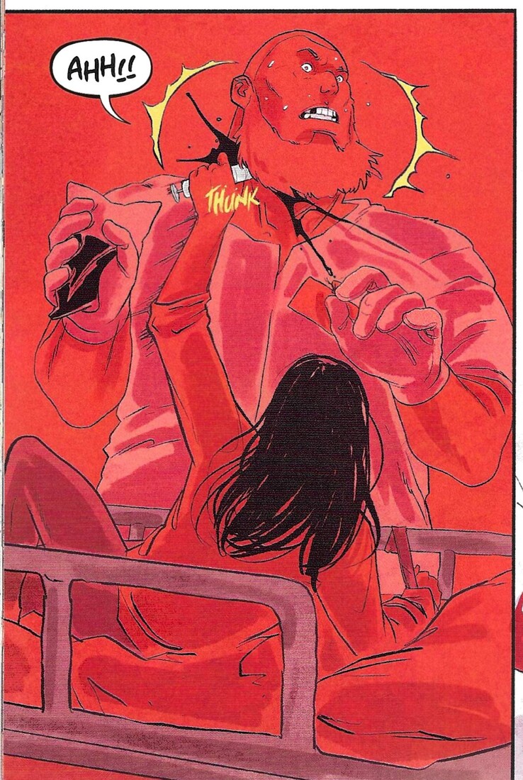 I liked issue #1 more than any of the “All In” issues, so I was curious to see where Camp was going with the story, and it turns out that he goes in some pretty cool directions. This is a superb comic about isolation, loss of community, fear, and what negative emotions can do to the connections we build with each other, and Camp wraps it all up in a freaky science fiction story and lets Rodríguez absolutely go to town on it. His protagonist, FBI guy John Jones, has become infected with an alien consciousness that calls itself “the Martian” for lack of a better term (it doesn’t seem to come from Mars, but maybe it does?), and he’s trying to come to terms with his own consciousness and even his personality being altered while the world goes to shit around him and he becomes more and more estranged from his wife and son. Camp does an excellent job showing how Jones is breaking down even as he’s seeing the world in a different way and begins to think of different ways to solve the problems plaguing Middleton, Colorado. The problems are things we deal with all the time, all amped up to 11 thanks to the baleful influence of “the Martian’s” enemy, but Camp does a decent job showing that it’s just people unable to overcome their basic prejudices, and all the villain does is give them a nudge. As I’ve said before, I dislike it when writers show basic shitty human behavior being created by outside forces, but Camp threads the needle pretty well, as it’s clear that even in a diverse place such as Middleton (which Camp sets up as a very diverse place), sometimes people can’t overcome their ancestral hatreds. Camp also does a good job showing how Jones is able to overcome those issues without simply fighting some bad guy, and while there is a “superhero fight” in the book, it’s between “the Martian” and its foe, and it’s not very much like what we usually see from superhero fights. This is just an excellent story about people whose lives have become untenable in some way and how they either do or don’t deal with that.