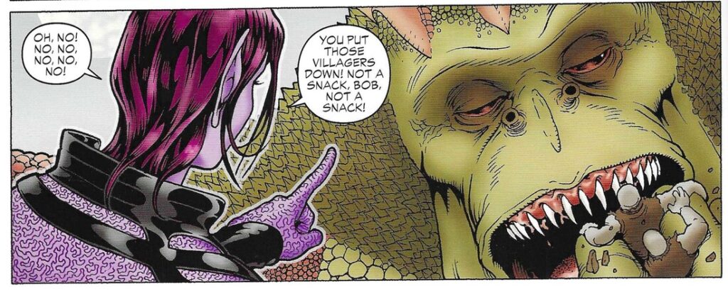 I get that Kindlon doesn’t want Gehenna to have an “arc,” and that’s fine. He notes that a staple of genre fiction is the utter lack of an arc, and he’s not wrong. Still, if he’s going to keep going with Gehenna the comic, at some point it would be nice if things slowed down a little. He notes that there are over 150 Destroyer novels, which is impressive. Has anyone read all of them? Probably not, because if you read a few, you get the gist. If Kindlon does that with Gehenna, it will get boring fast. Maybe it can sustain one more arc. But at some point, if we’re going to keep reading, it needs to give us something different. At least, I would like that. I might be wacky.