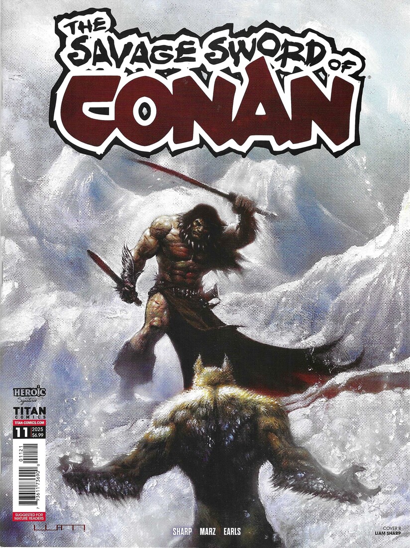 The Savage Sword of Conan #11 by Liam Sharp (writer/artist), Ron Marz (writer), Dany Earls (artist), Richard Starkings (letterer), and Tyler Smith (letterer). $6.99, 64 pgs, Titan Comics.