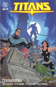 Titans volume 4: Terminated by John Layman (writer), Pete Woods (artist/colorist), Daniel Bayliss (artist/colorist), Max Raynor (artist), Matt Herms (colorist), Wes Abbott (letterer), Marquis Draper (collection editor), and Brittany Holzherr (senior collection editor). $17.99, 120 pgs, DC.
