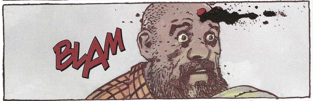 It doesn’t really matter what’s going on — it’s ridiculous, sure, but still entertaining — and Perillo doesn’t do much in terms of character development or anything, although the end of the story does get a bit poignant. This is, as usual, just a vehicle for Cardoselli’s rambunctious, wacky, violent, exuberant artwork, and he delivers. So many heads getting stabbed with scissors! Such a weird creature in the sheriff’s dream! So many artful panels that let you know that, yeah, Cardoselli does know what he’s doing, even if he enjoys drawing ridiculously proportioned people (women with tiny waist and big boobs, strange men with too-long arms) and heads exploding and getting gashed with blades. As always, I will never defend a Cardoselli comic except to say that if you’re just looking for the goofiest grindhouse shit around, you should at least take a look at one of his comics. Literally any one will do!