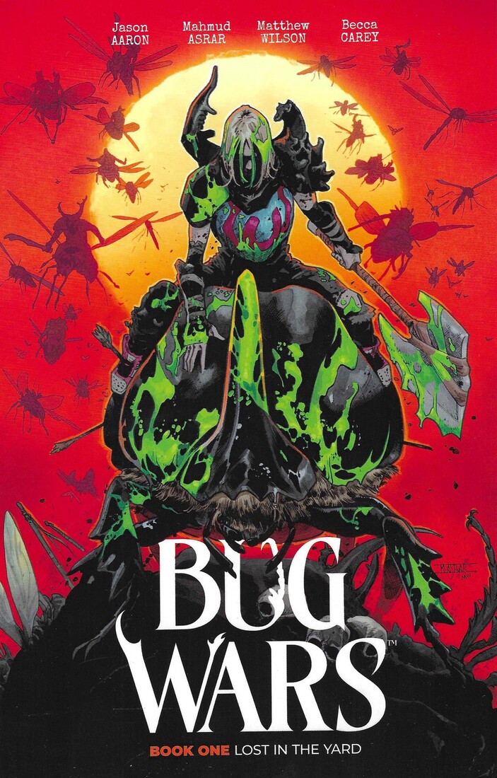Bug Wars volume 1: Lost in the Yard by Jason Aaron (writer), Mahmud Asrar (artist), Matthew Wilson (colorist), Becca Carey (letterer), and Heather Antos (editor). $16.99, 178 pgs, Image.
