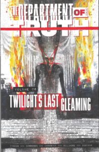 The Department of Truth volume 6: Twilight’s Last Gleaming by James Tynion IV (writer), Martin Simmonds (artist), Letizia Cadonici (artist), Jordie Bellaire (colorist), Aditya Bidikar (letterer), and Steve Foxe (editor). $16.99, 145 pgs, Image.