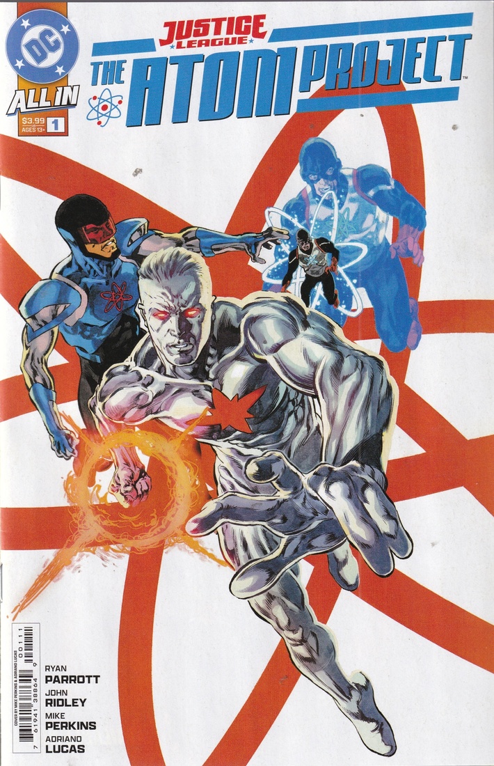 Justice League: The Atom Project by Ryan Parrott (writer), John Ridley (writer), Mike Perkins (artist), Adriano Lucas (colorist), Wes Abbott (letterer), and Matthew Levine (collection editor). $17.99, 120 pgs, DC.