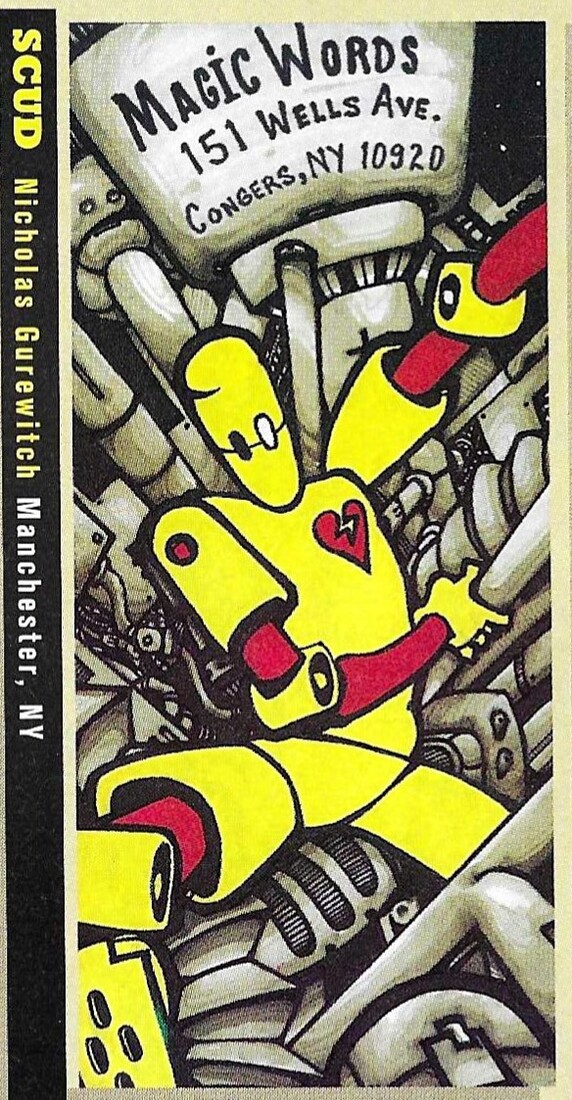 In the letters, some dude writes in that he uses the JLA membership card that Wizard provided in one of their issues as a student ID card to get into movies for less money. Nobody ever challenges him! Good for that dude, sticking it to the man! Another dude writes asking if the lead singer from Monster Magnet (“one of the coolest rock bands around,” according to him) was really a comic book fan and was really in a Frank Miller comic. Apparently, yes on both counts — Miller put him in the Amazing Spider-Man Annual #14, so dig that out and give it a look! Wizard, being the progressive mag it is, ends an answer to one of the questions with this line: “Gee, I wonder if Lois Lane knows Supes is a fairy.” Good job, Wizard! (Someone asked how Superman could fly, and Mark Waid said he didn’t want to try to explain it because it would take all the magic out of it, so he just said fairy dust, leading Wizard to come up with that line.) Also, in the “art on the envelopes” section, we find this Scud-drawn one from a certain Nicholas Gurewitch: