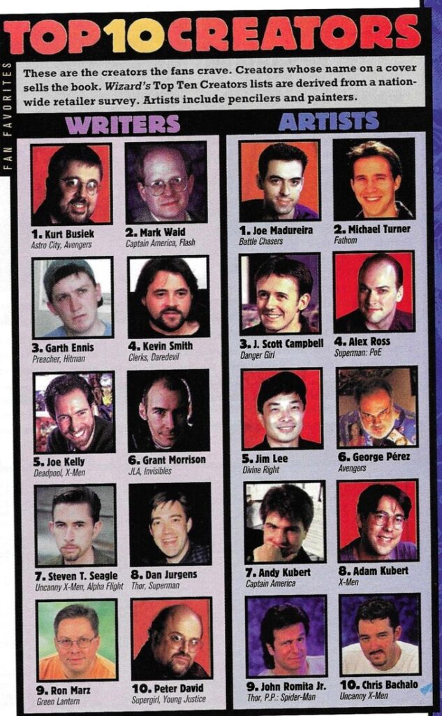 Wizard gets to their top 10 creators, and … I mean, you know, it’s the familiar faces. Some new ones, but mostly just the usual suspects. And we’re back to no chicks, because Wizard just couldn’t figure them ladies out!